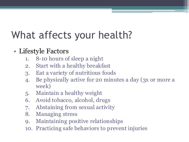 Lifestyle Factors Definition Health . If A Healthy Diet, Good Sleep And Exercise Do Not Help You Cope With Fatigue, It Is Time To Talk To A Doctor. SELAMAT MEMBACA! Many lifestyle factors such as the age at which to start a family, nutrition, weight, exercise, psychological stress, environmental and occupational exposures, and others can. Lifestyle Factors from image.slidesharecdn.com Good health helps people live a full life. Healthcare exists to help people maintain this optimal state of health. There are several positive lifestyle factors that can promote good health if you want to live a long and healthy life. To celebrate a special moment, moderate intake of alcohol may be part of a healthy lifestyle by those who don't have a problem with alcohol and are not predisposed to alcohol abuse. lifestyle factors ...